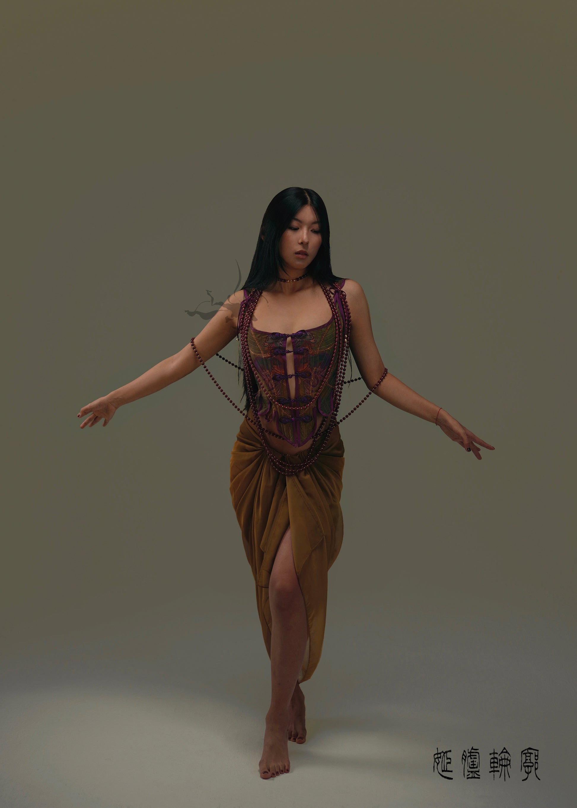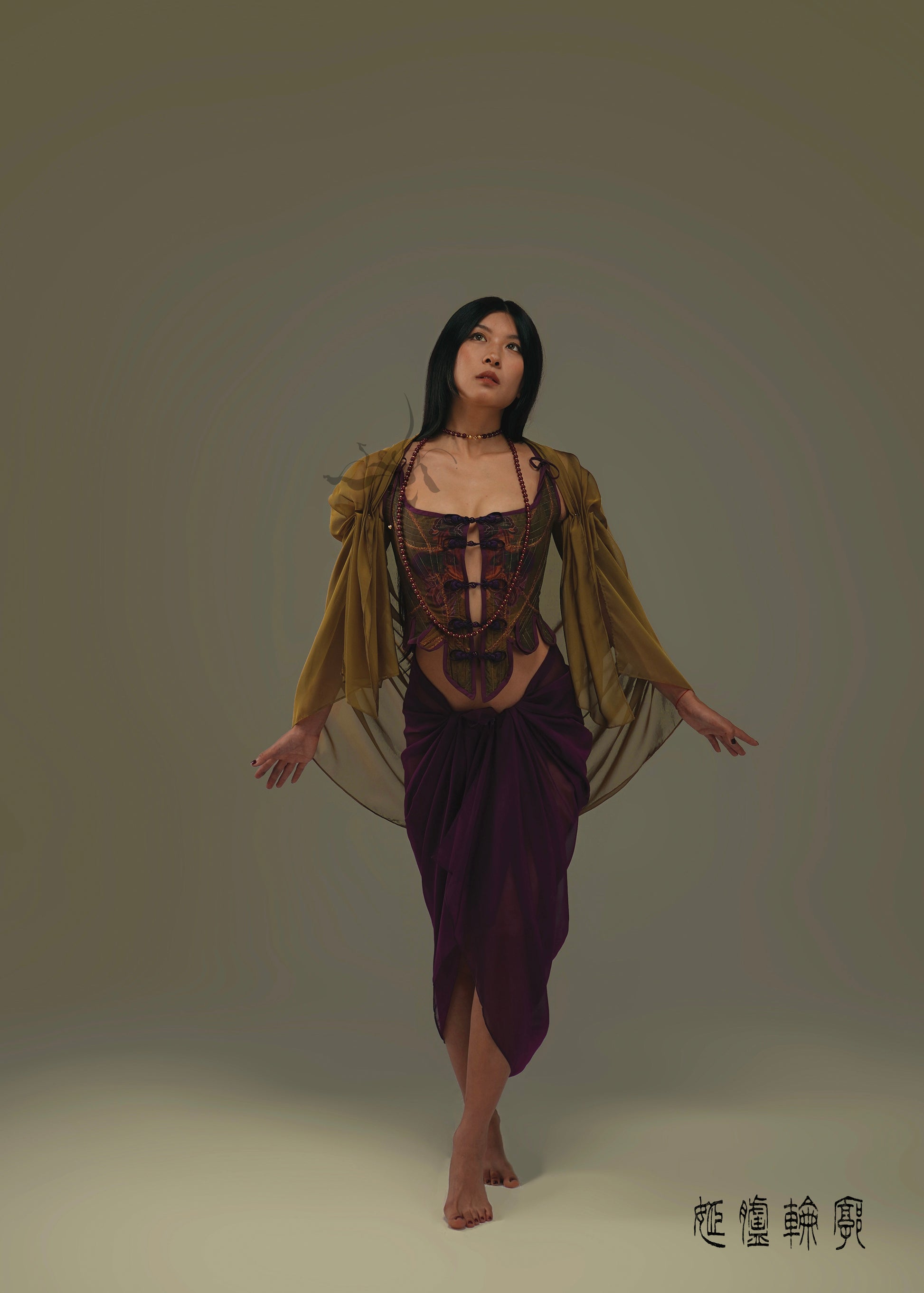 This piece is part of a The reversable Hand-Sewn Traditional Corset from the JIFF CONTOUR Religion Collection features designer hand-painted oriental motifs.