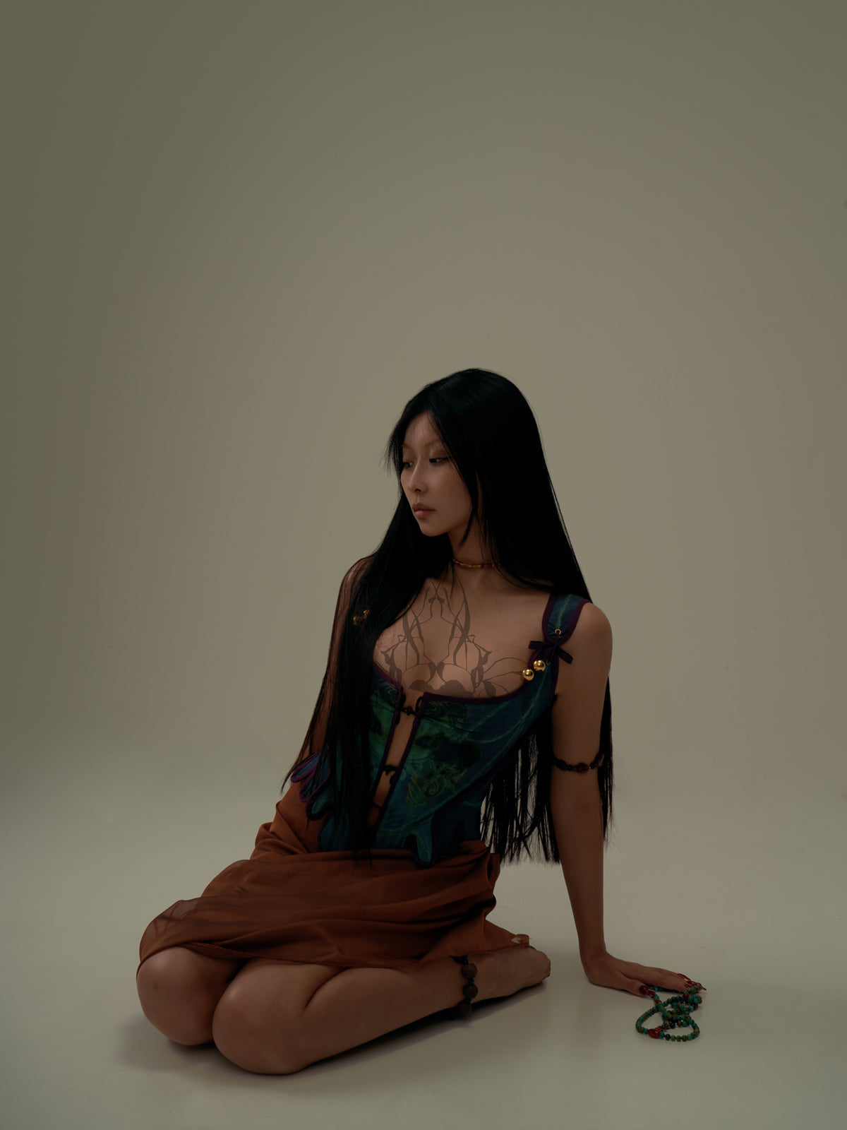 Adorned with 18K gold-plated pure silver beads, this corset offers luxurious elegance and long-lasting shine.