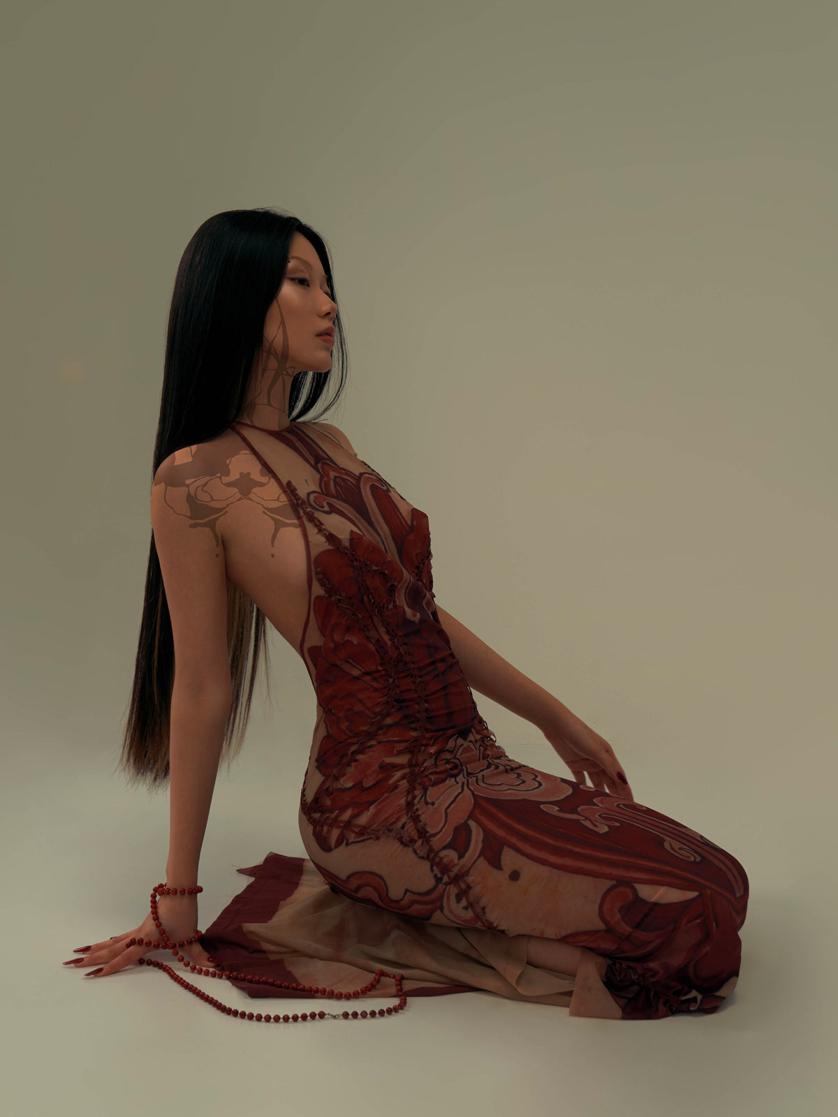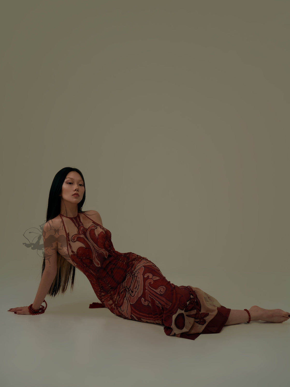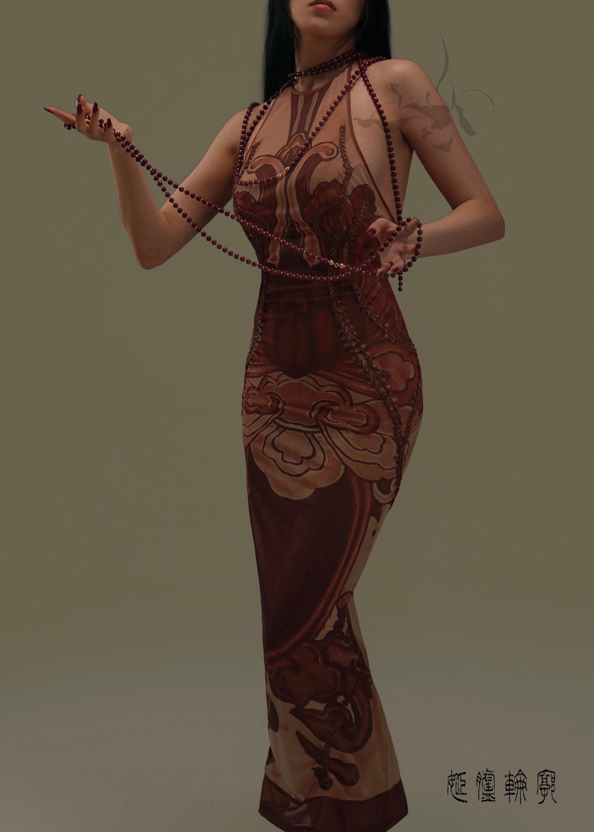This piece is part of a collection is inspired by traditional Chinese totem art. collection is inspired by traditional Chinese totem art. It combines original hand-drawn pattern prints with handknitted craftsmanship, using precision printing technology to embellish your body with the totem patterns.
